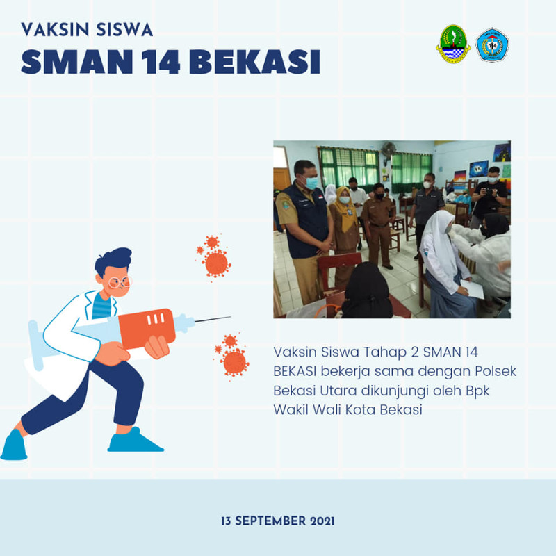 Vaksin Siswa SMAN 14 Bekasi Dosis 2. Alhamdulillah pada hari Senin 13 September 2021 siswa SMAN 14 Bekasi telah divaksin dosis 2.