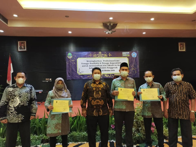Pemberian Penghargaan Kepada Guru, Tenaga Kependidikan dan Caraka Teladan SMAN 14 Bekasi Tahun 2021. Pemberian Penghargaan ini diberikan saat Raker di Royal Safari Garden Cisarua 30-31 Oktober 2021.