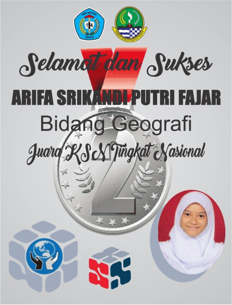 Selamat dan Sukses kepada Arifa Srikandi Putri Fajar siswa SMAN 14 Bekasi yang telah merain Medali Perak dalam KSN Tingkat Nasional Bidang Geografi pada 8-12 November 2021.