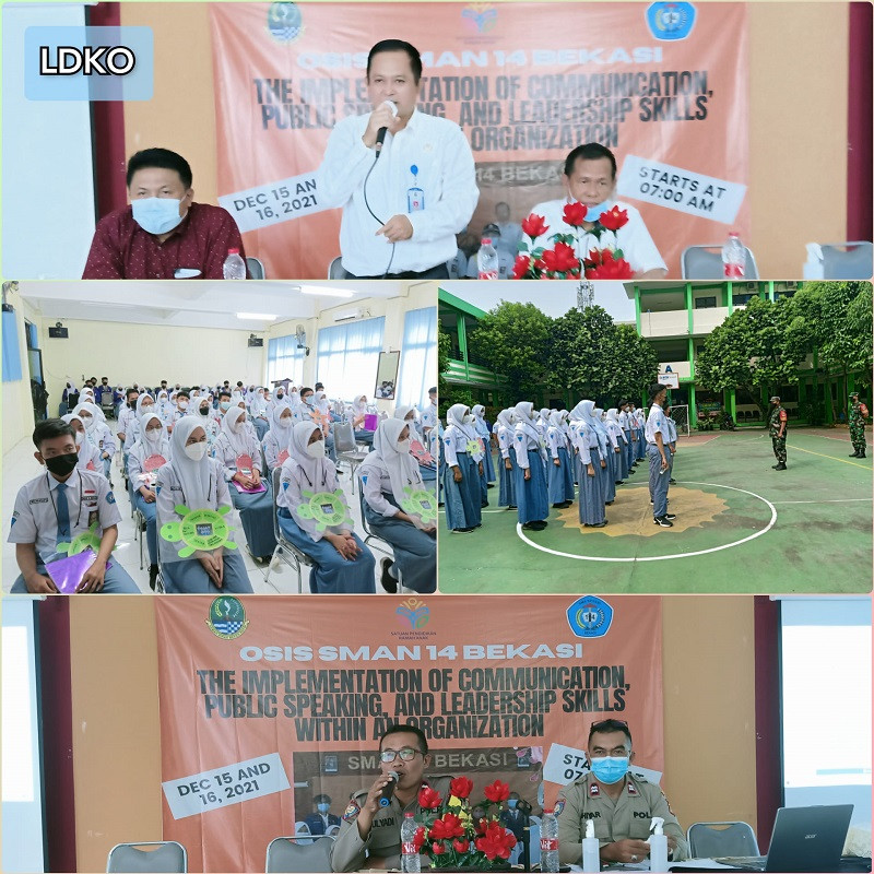 Kegiatan LDKO dibuka oleh Bpk Kepala Sekolah SMAN 14 Bekasi dan di hadiri Komite Sekolah. Materi kegiatan diiisi Oleh Bpk Asep (Motivator), Babinsa dan Bimaspol.